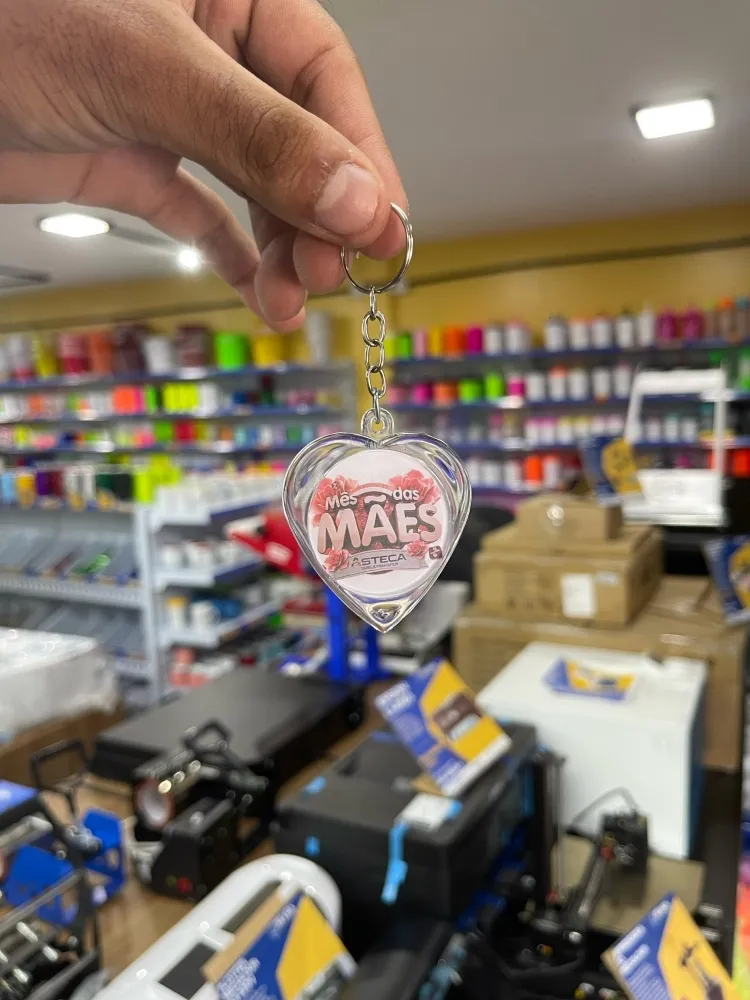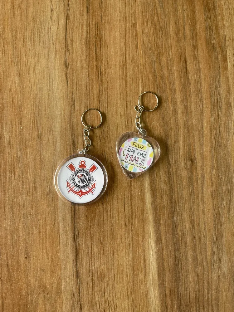 * Chaveiro de acrílico montados com corrente e argola;